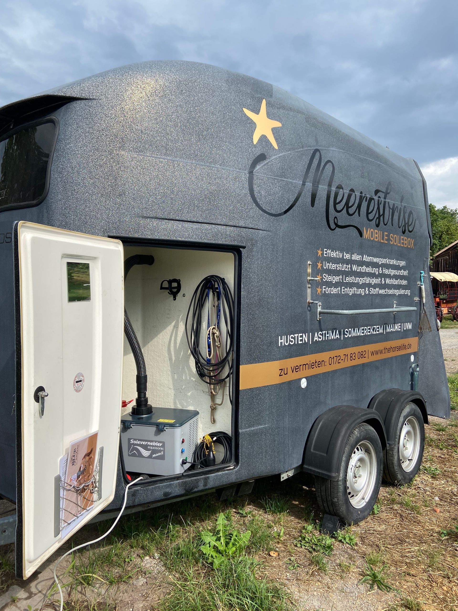 Als Basis der mobilen Solebox "Meeresbrise" dient ein Pferdeanhänger. Dennoch kann quasi "alles rein, was in den Anhänger geht und passt" - ganz egal ob auf zwei oder vier Beinen...